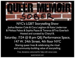 Well, we have our very first guest curated Queer Memoir! This Saturday July 24 at 8 PM.