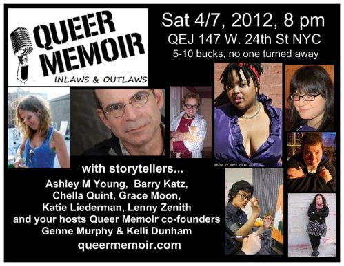 GENNE MURPHY is a Philadelphia native, playwright and arts educator. Her work has appeared on Philadelphia stages and radio. Check out the upcoming production of her play, HOPE STREET AND OTHER LONELY PLACES with Azuka Theatre March 15-April 1: http://azukatheatre.org/show.php?prod=42. Genne is the co-producer, with Kelli Dunham, of Queer Memoir (queermemoir.com).