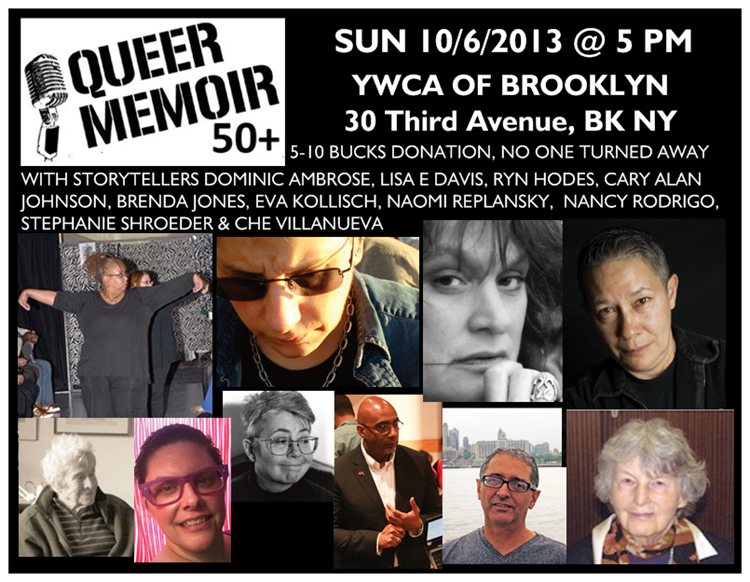 Queer Memoir is New York’s community based LGBT storytelling multi-venue series. This month’s theme is 50+ guest and this special event is being curated by Ryn Hodez and Stephanie Schroeder.